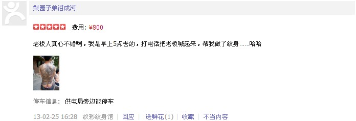 看看到紋過朋友怎么說(來自最真實(shí)的點(diǎn)評(píng)——大眾點(diǎn)評(píng)網(wǎng)):